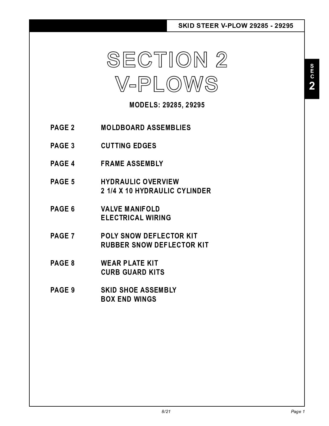 Parts Diagram for Hiniker 29285, 29295 V-Plows. Parts Diagram #25013110 Revision J Section 2