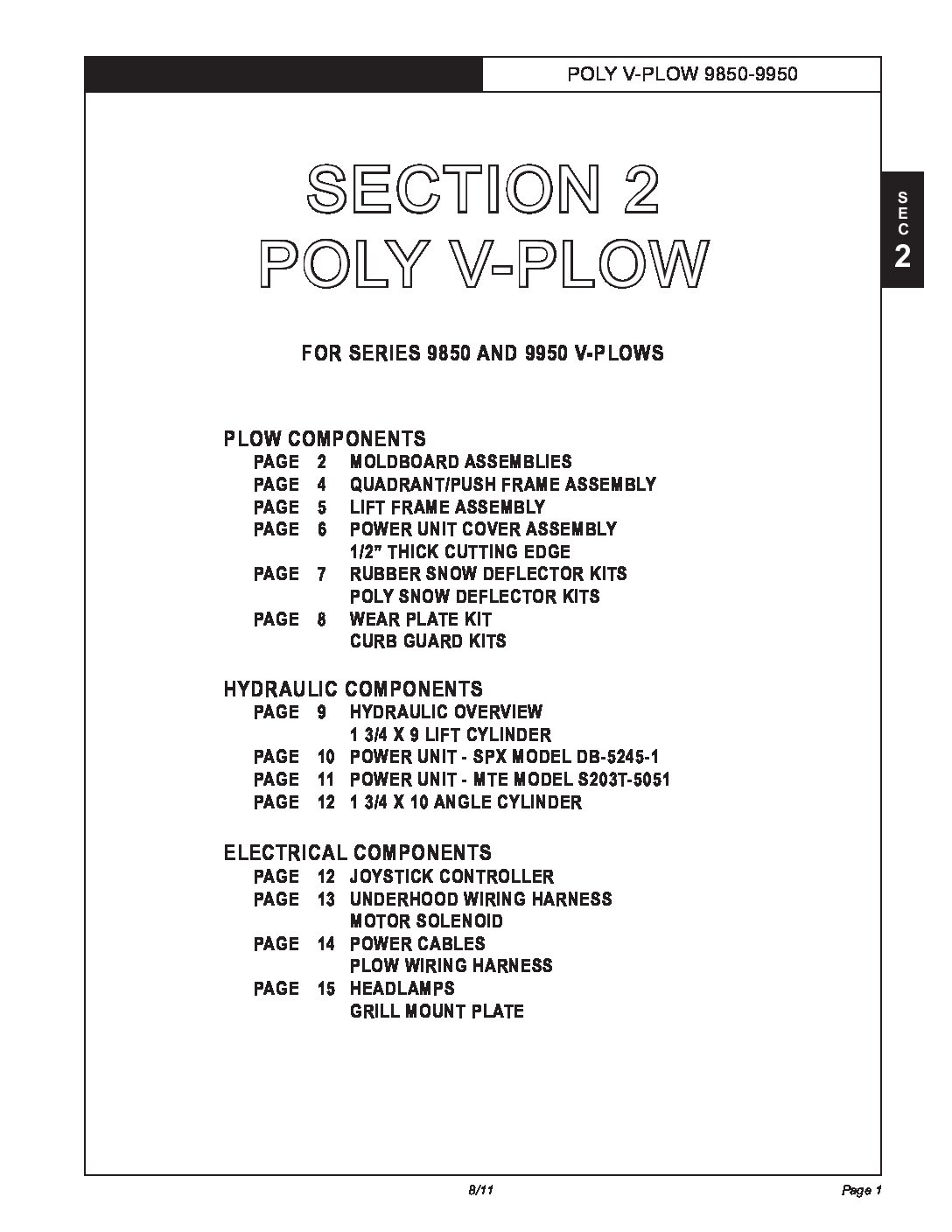 Parts Diagram for Hiniker 9850, 9950 V-Plows. Parts Diagram #25011899 Revision G Section 2