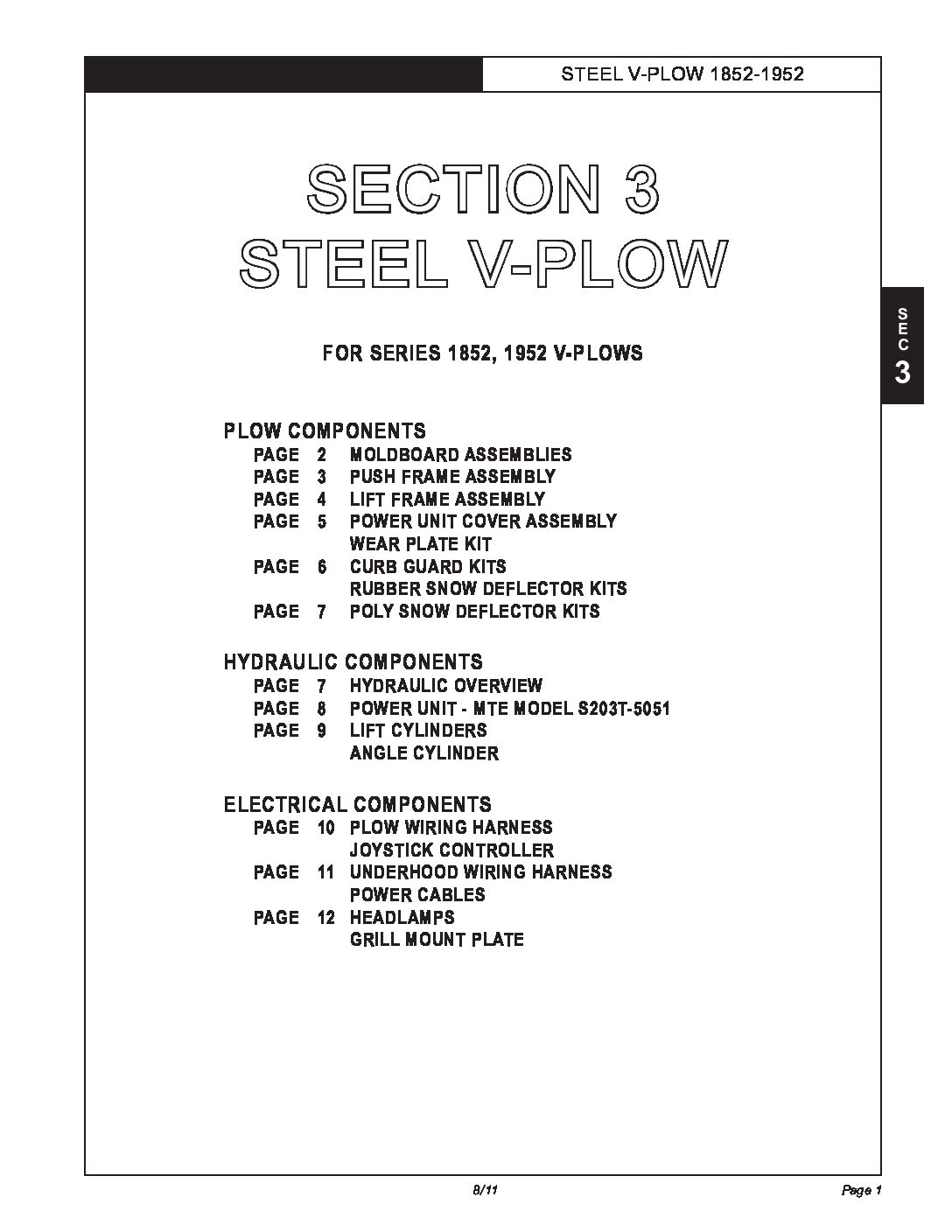 Parts Diagram for Hiniker 1852, 1952 V-Plows. Parts Diagram #25011899 Revision G Section 3