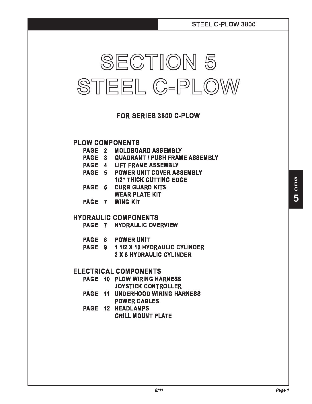 Parts Diagram for Hiniker 3800 C-Plow. Parts Diagram #25011899 Revision G Section 5