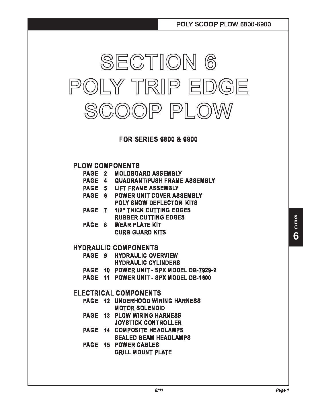 Parts Diagrams for Hiniker 6800, 6900 Scoop Plows. Parts Diagram #25011899 Revision G Section 6